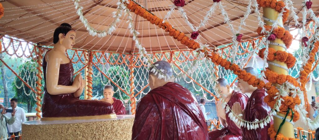 सारनाथ (वाराणसी)। महात्मा गौतम बुद्ध की पवित्र अस्थि कलश के दर्शन के दूसरे दिन प्रातःकाल से ही श्रद्धालुओं की भारी भीड़ कतार में देखने को मिली। गौरतलब हो, परंपरागत पूजा-अनुष्ठान के बाद गौतम बुद्ध के पवित्र अवशेषों को आमजनों के दर्शन हेतु मूलगंध कुटी विहार स्थित मंदिर में रखा गया है, जिनका दर्शन-पूजन 5 नवंबर तक चलेगा।