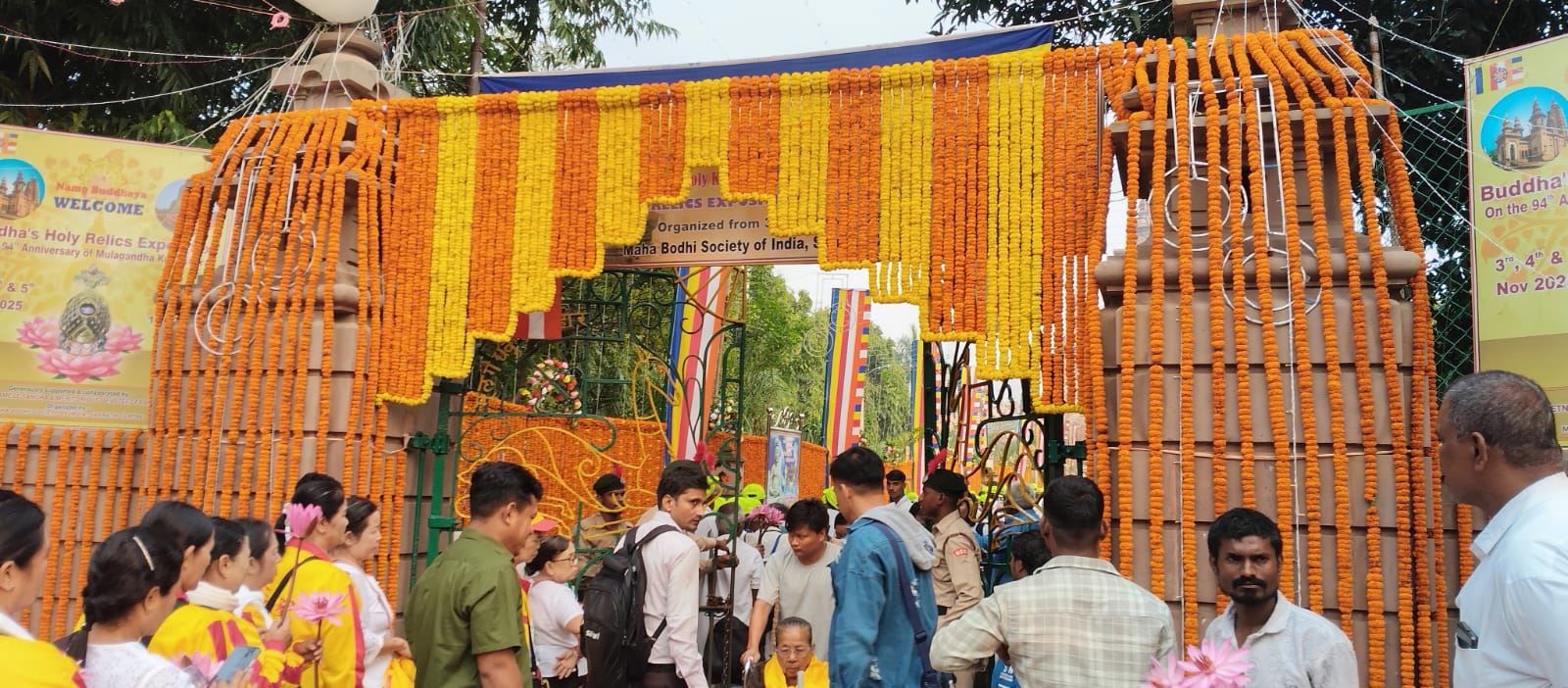 सारनाथ (वाराणसी)। महात्मा गौतम बुद्ध की पवित्र अस्थि कलश के दर्शन के दूसरे दिन प्रातःकाल से ही श्रद्धालुओं की भारी भीड़ कतार में देखने को मिली। गौरतलब हो, परंपरागत पूजा-अनुष्ठान के बाद गौतम बुद्ध के पवित्र अवशेषों को आमजनों के दर्शन हेतु मूलगंध कुटी विहार स्थित मंदिर में रखा गया है, जिनका दर्शन-पूजन 5 नवंबर तक चलेगा।