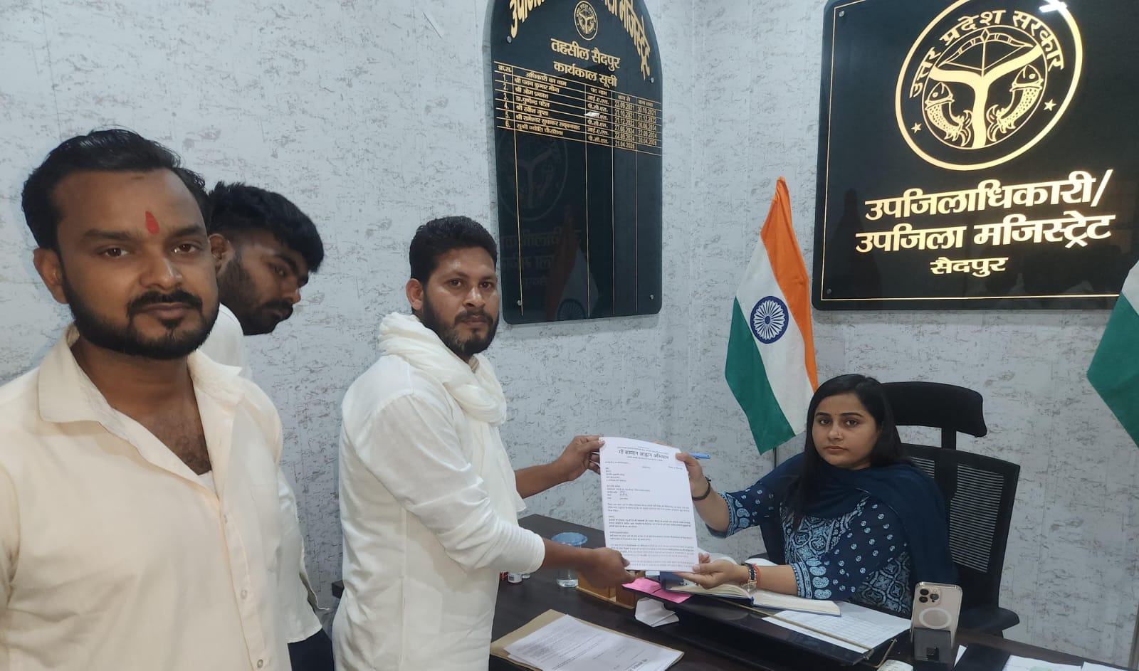 सैदपुर (गाजीपुर) जयदेश। राष्ट्रव्यापी गौ सम्मान आह्वान अभियान के तहत तहसील सैदपुर में गौ भक्तों ने उपजिलाधिकारी के माध्यम से प्रधानमंत्री को आठ सूत्रीय मांगों से संबंधित ज्ञापन सौंपा। करंडा थाना क्षेत्र में हुई घटना के बाद जनपद गाजीपुर में लागू धारा 163 के अनुपालन में प्रस्तावित गौ सम्मान यात्रा नहीं निकाली गई और केवल पांच लोगों के प्रतिनिधिमंडल ने उपजिलाधिकारी सुश्री ज्योति चौरसिया को ज्ञापन दिया।
