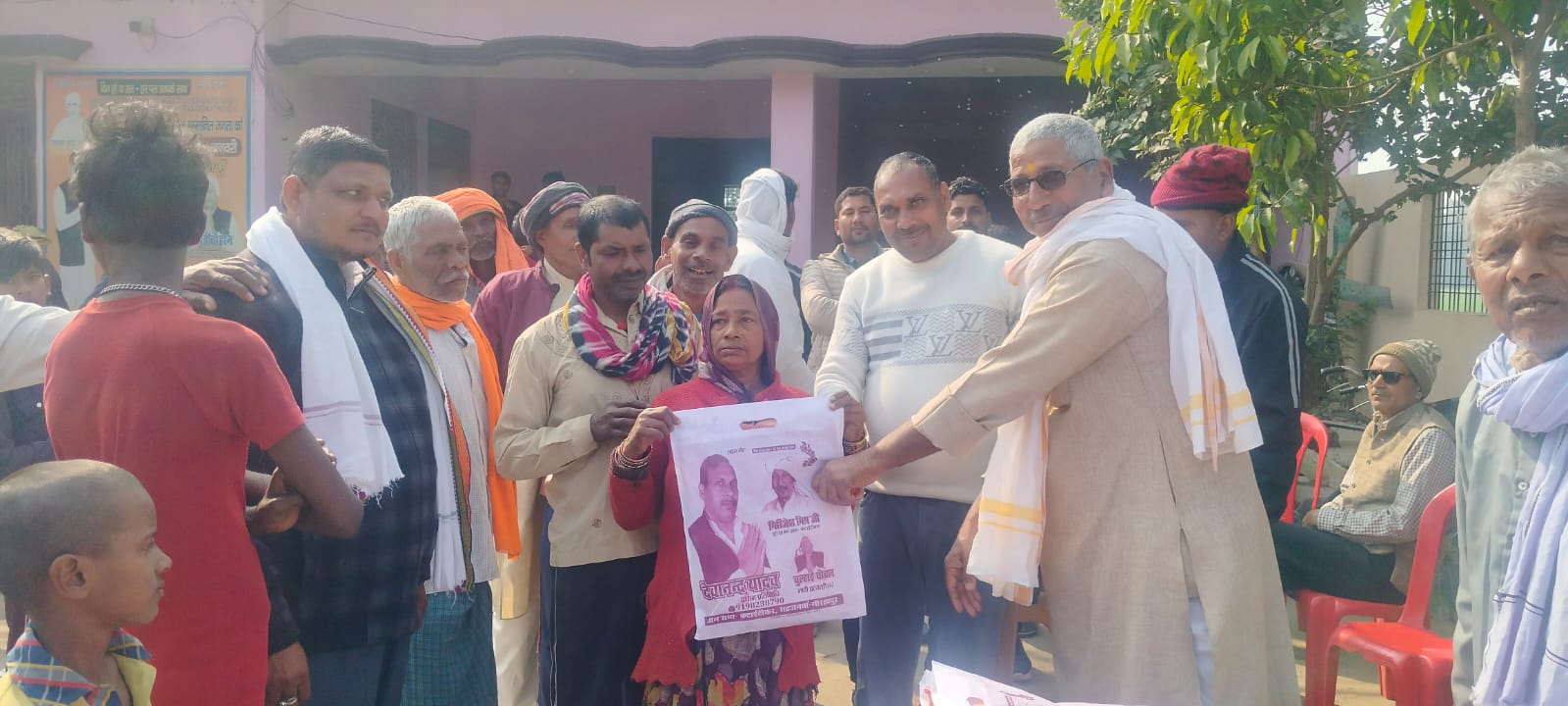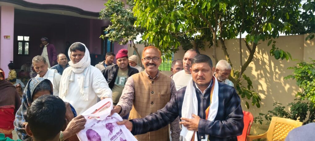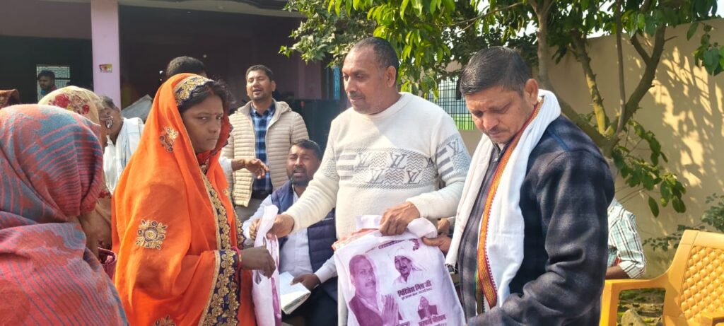 ग्राम प्रधान प्रतिनिधि व जनप्रतिनिधियों की मौजूदगी में हुआ साड़ी वितरण कार्यक्रम