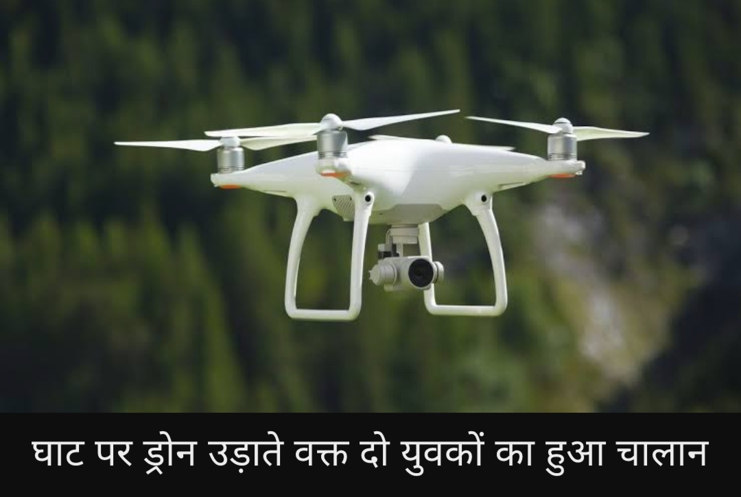 घाट पर ड्रोन उड़ाते वक्त दो युवकों का हुआ चालान