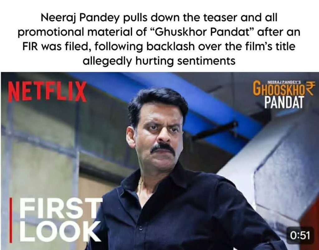 गोरखपुर । वेब सीरीज घूसखोर पंडत रिलीज से पहले ही विवादों में घिर गई है। टाइटल को लेकर ब्राह्मण समाज के लोगों ने देश के कई स्थानों पर विरोध प्रदर्शन किया। वहीं मुख्यमंत्री के शहर गोरखपुर में फ़िल्म निर्माता,निर्देशक और पूरी टीम के खिलाफ सामाजिक संगठन युवा जनकल्याण समिति के प्रमुख व राष्ट्रीय अध्यक्ष समाजसेवी कुलदीप पाण्डेय ने सोशल मीडिया के माध्यम से आक्रोश जताया है।