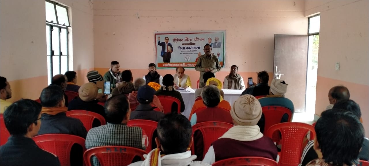 भारतीय जनता पार्टी द्वारा 11 से 25 जनवरी तक चलाए जाने वाले “संविधान गौरव अभियान” को सफल बनाने के लिए मझवारा मोड़ स्थित धर्मशाला में मंडल स्तरीय कार्यशाला आयोजित की गई। कार्यशाला में भाजपा के बूथ स्तरीय कार्यकर्ताओं ने बड़ी संख्या में भाग लिया।