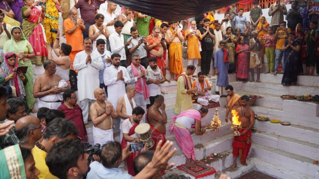 चक्रपुष्करिणी कुंड में अजय राय ने लगाई डुबकी, मां मणिकर्णिका का दर्शन-पूजन कर की लोक कल्याण की कामना