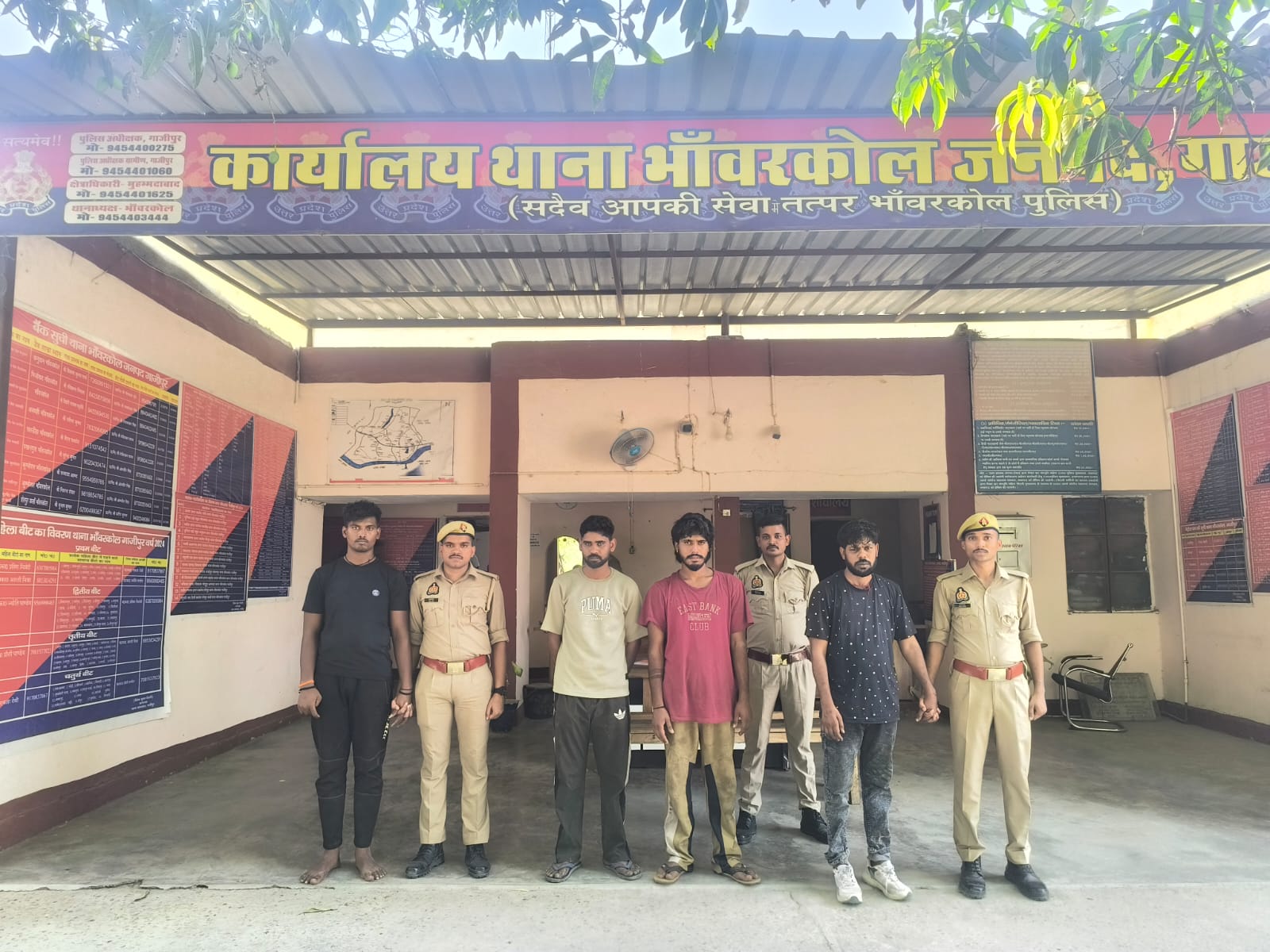 भांवरकोल (गाजीपुर) जयदेश। पुलिस अधीक्षक एवं ग्रामीण पुलिस अधीक्षक के दिशा निर्देशानुसार और क्षेत्राधिकारी मोहम्मदाबाद के मार्गदर्शन मे पुलिस द्वारा चलाए जा रहे अपराधी एवं वांछित अपराधियों के खिलाफ के तहत थानाध्यक्ष भांवरकोल अपने हमराहियों के साथ सघन चेकिंग अभियान चला रहे थे। मुखबिर की सूचना के आधार पर  दो मिनी ट्रकों से 24 गौवंश बरामद कर चार गौ-तस्करों को गिरफ्तार किया है। पुलिस की इस कार्रवाई से गौ-तस्करों के बीच हड़कंप मच गया है और भांवरकोल पुलिस की सक्रियता की चर्चा हो रही है।