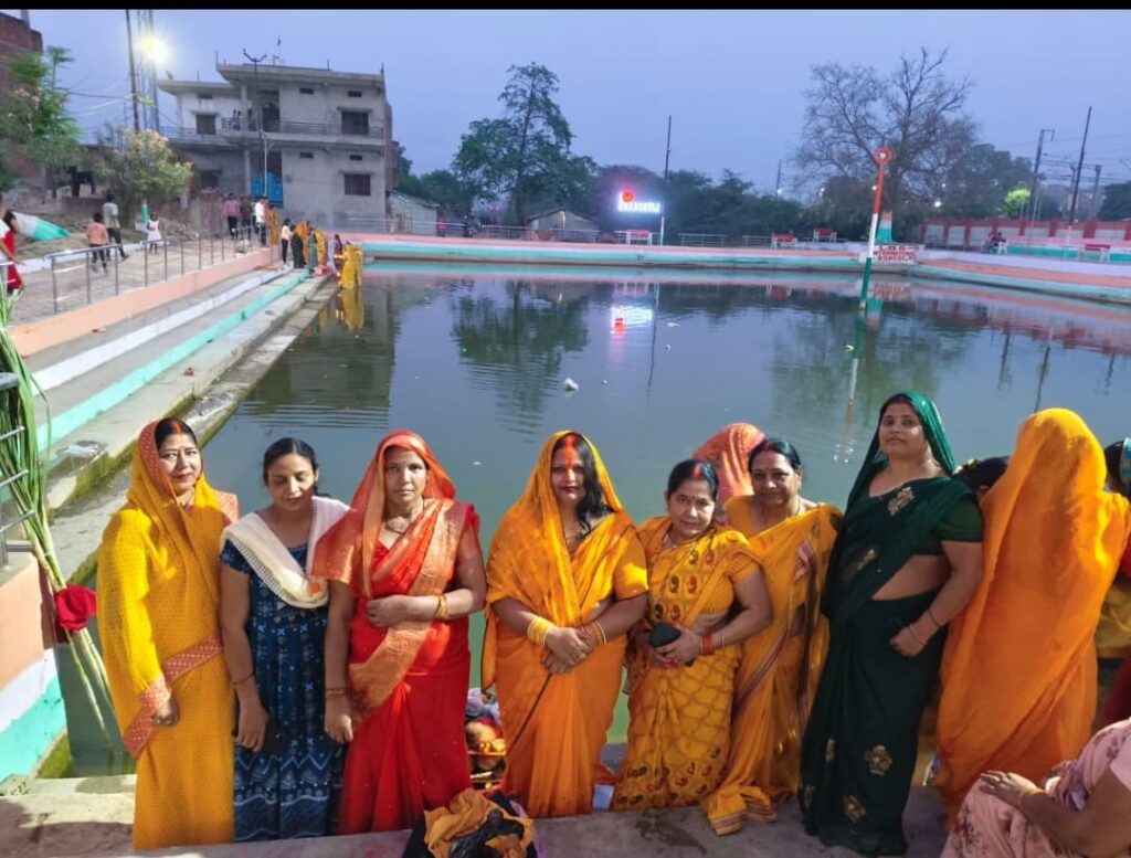 चैती छठ महापर्व पर व्रतियों ने दिया अस्ताचलगामी सूर्य को अर्घ्य