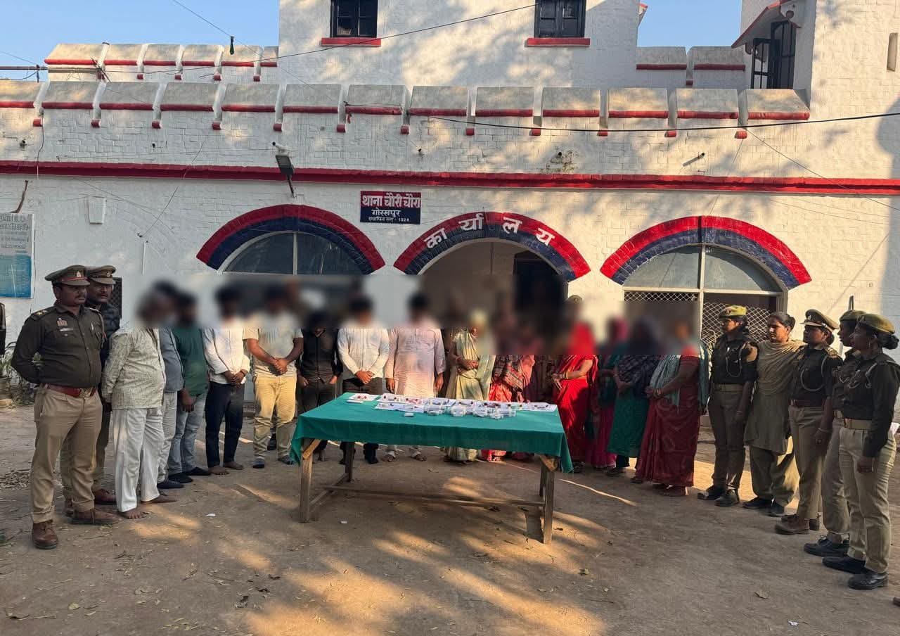गोरखपुर। जनपद में अपराध पर प्रभावी नियंत्रण के उद्देश्य से चलाए जा रहे अभियान के तहत थाना चौरी चौरा पुलिस ने चोरी के एक मामले में बड़ी सफलता हासिल करते हुए 16 अभियुक्तों व अभियुक्ताओं को गिरफ्तार किया है। पुलिस ने आरोपितों के कब्जे से दो अदद पीली धातु की चेन (माल मुकदमाती), 45,940 रुपये नकद, पांच चारपहिया वाहन, चार एंड्रॉयड मोबाइल फोन सहित अन्य सामान बरामद किया है।