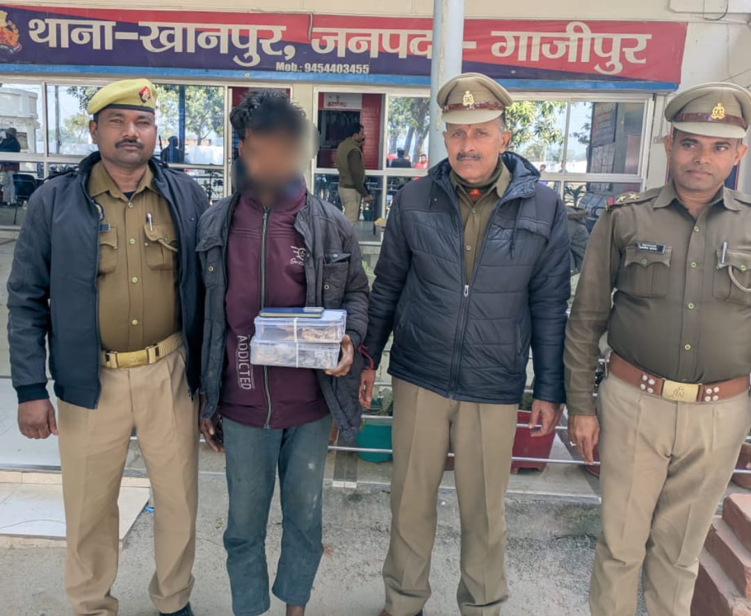 गाजीपुर। खानपुर पुलिस ने अपराधियों के खिलाफ चलाए जा रहे अभियान में एक बड़ी सफलता हासिल की है। शुक्रवार को पुलिस ने शिवदासपुर मोड़ तिराहे पर चेकिंग के दौरान मुखबिर की सूचना पर अनिल यादव उर्फ बालकरन (पुत्र कसरत यादव, निवासी कैथवलिया, थाना खानपुर) को चोरी के सामान सहित गिरफ्तार कर लिया।