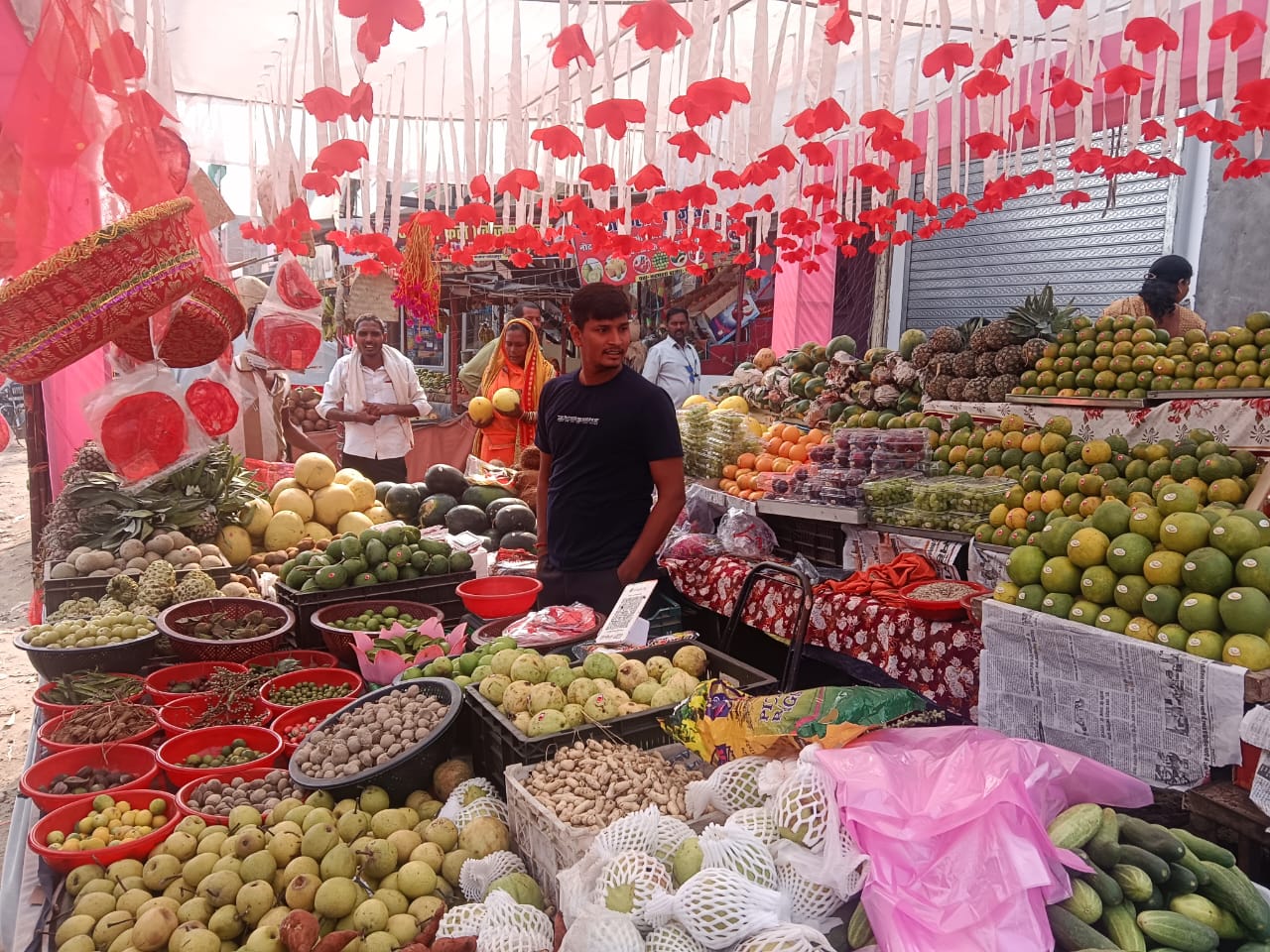 बाज़ार में चारों ओर उत्सव का माहौल है, हर चेहरे पर छठ मैया के प्रति गहरी श्रद्धा का भाव साफ झलकता है। पारंपरिक परिधानों में सजी-धजी महिलाएं जब पूजा सामग्री और फलों की टोकरियाँ संभालती हैं, तो यह दृश्य सिर्फ खरीदारी का नहीं, बल्कि पीढ़ी-दर-पीढ़ी चली आ रही एक पवित्र परंपरा के निर्वहन का बन जाता है।