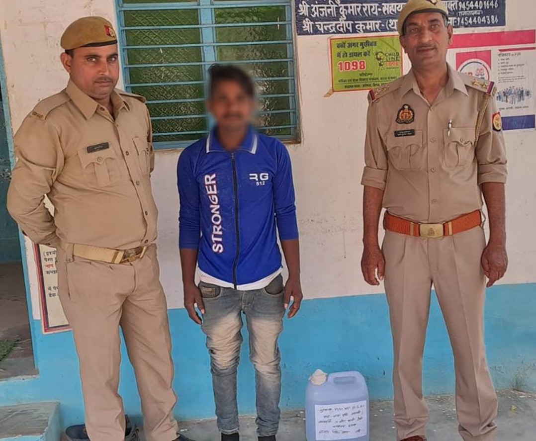 जंसा पुलिस ने एक अभियुक्त को 10 लीटर कच्ची देशी अवैध शराब के साथ किया गिरफ्तार