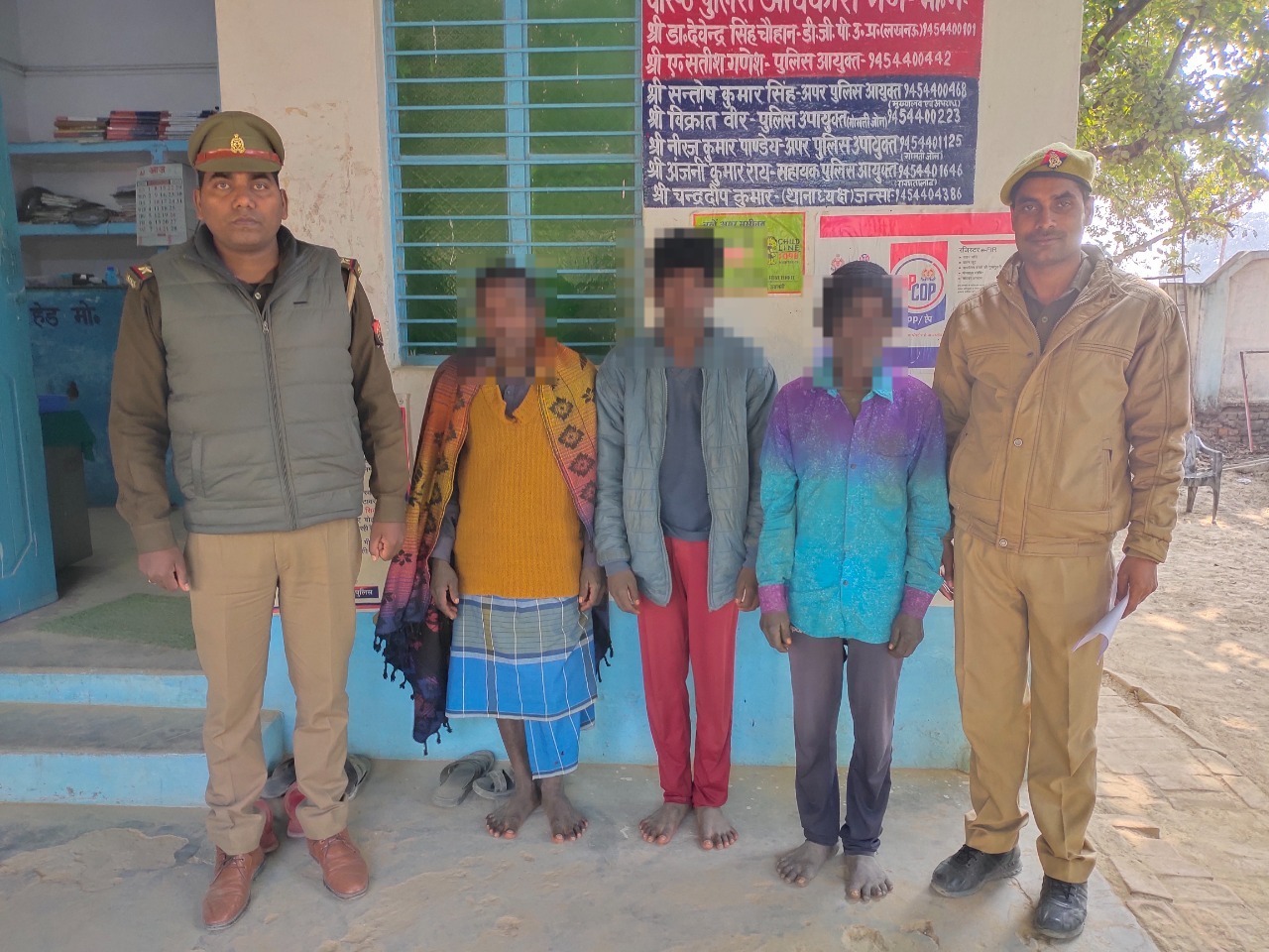 वाराणसी: अपराध एवं अपराधियों की रोकथाम गिरफ्तारी हेतु चलाये जा रहे अभियान के क्रम में पुलिस उपायुक्त गोमती ज़ोन के पर्यवेक्षण में थाना जंसा पुलिस द्वारा पंजीकृत मु0अ0सं0 10/2023 धारा 379, 411 भादवि व मु0अ0सं0 246/2022 धारा 457,380,411 भादवि से संबंधित अभियुक्त सुनील, महेश तथा निरहू वनवासी को कतवारुपुर तिराहे से गिरफ्तार किया गया तथा अभियुक्तों के कब्जे से चोरी के तीन जोड़ी पायल सफेद धातु व कुल धनराशि 700 रुपये तथा बोरी में 2 पैकेट बहार गुटखा, एक बण्डल सिगरेट टोटल, 23 पैकेट छोटी हल्दीराम की मूंग दाल नमकीन , 2 पैकेट मैंगों टॉफी, 1/2-1/2लीटर के 2 बोतल सलोनी सरसो तेल, 2 बण्डल पारले जी बिस्कुट बरामद किया गया। उक्त गिरफ्तारी व बरामदगी के संबंध में थाना जंसा पुलिस द्वारा आवश्यक विधिक कार्यवाही की जा रही है।