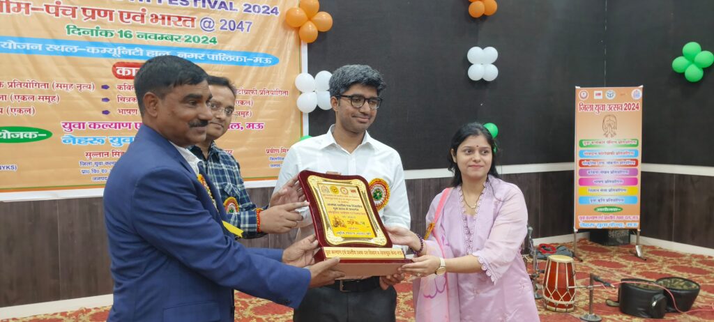 मऊ। युवा कल्याण एवं नेहरू युवा केंद्र विभाग द्वारा जनपद स्तरीय युवा उत्सव का आयोजन कम्युनिटी हॉल, नगर पालिका मऊ में भव्य रूप से किया गया। कार्यक्रम का शुभारंभ मुख्य विकास अधिकारी प्रशांत नागर ने दीप प्रज्वलित कर और माल्यार्पण के साथ किया। उन्होंने कहा कि यह महोत्सव ग्रामीण क्षेत्रों के कलाकारों को एक बेहतरीन मंच प्रदान करता है।