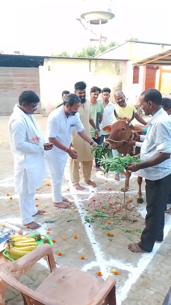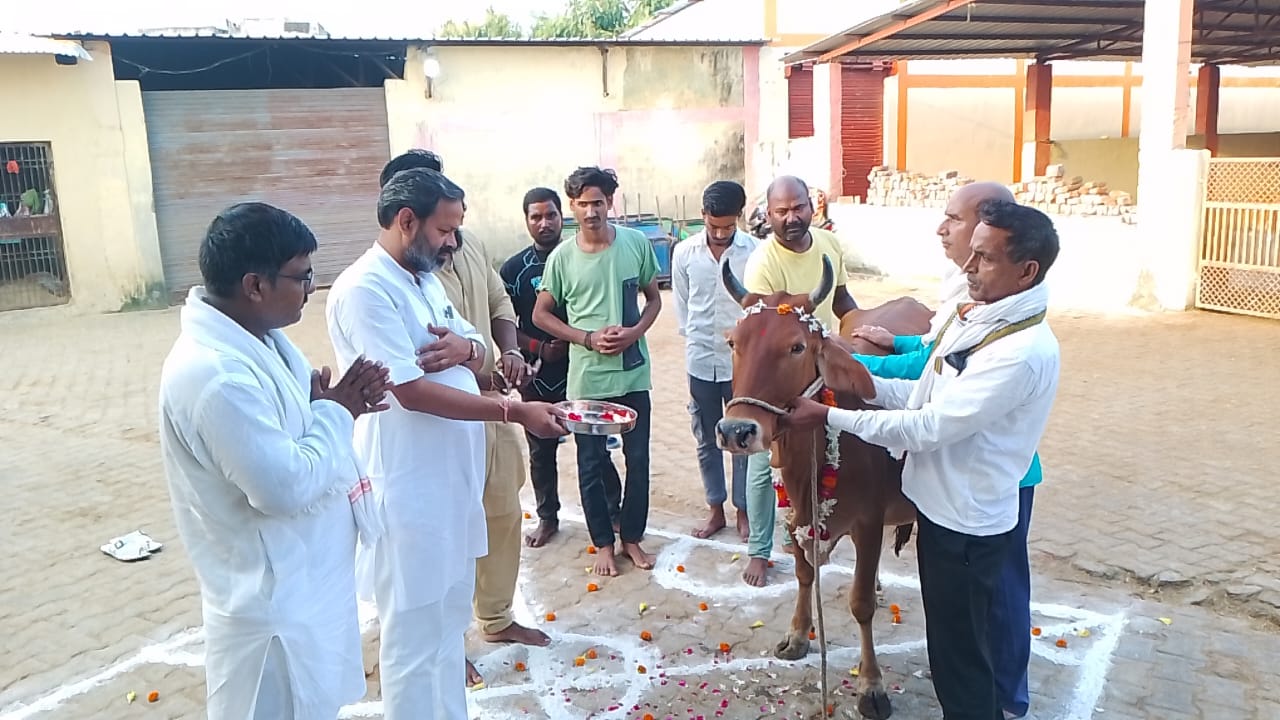 जन्माष्टमी पर नगर पालिका अध्यक्ष ने की गौ सेवा, गोशाला में किया पूजन