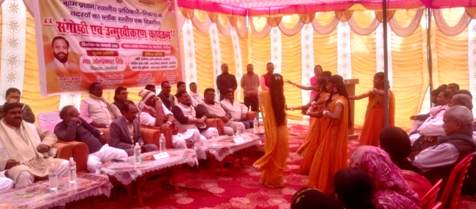 जमानिया (गाजीपुर) जयदेश। ब्लॉक संसाधन केंद्र परिसर जमानिया में शनिवार को ग्राम प्रधानों, निकाय सदस्यों और प्रधानाध्यापकों के लिए ब्लॉक स्तरीय संगोष्ठी एवं उन्मुखीकरण कार्यक्रम का आयोजन किया गया। कार्यक्रम का शुभारंभ मुख्य अतिथि विधायक ओम प्रकाश सिंह द्वारा माँ सरस्वती की प्रतिमा पर पुष्प अर्पित कर किया गया। इस दौरान निपुण भारत मिशन, ऑपरेशन कायाकल्प और मिड-डे मील के प्रभावी क्रियान्वयन को लेकर विस्तृत चर्चा की गई।