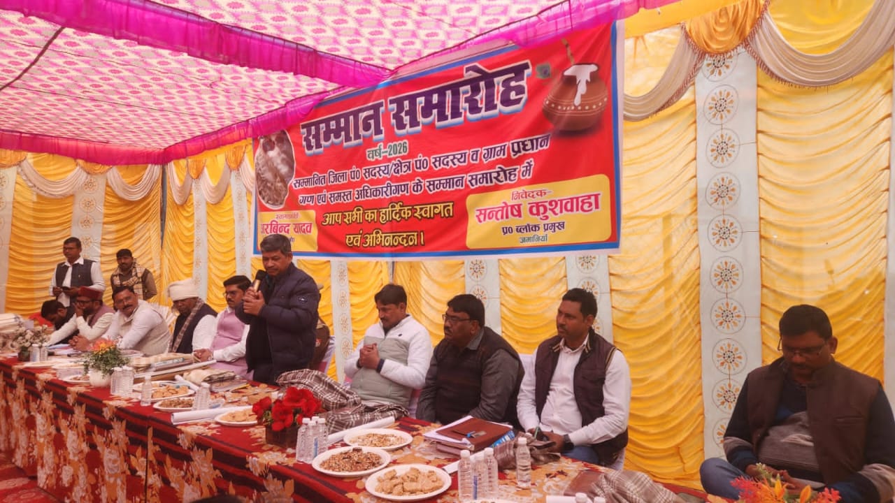 जमानिया (गाजीपुर) जयदेश। स्थानीय ब्लॉक परिसर में सोमवार को ब्लॉक प्रमुख प्रतिनिधि संतोष कुशवाहा की ओर से जनप्रतिनिधि सम्मान समारोह एवं खिचड़ी सहभोज का भव्य आयोजन किया गया। कार्यक्रम में क्षेत्र के विकास में योगदान देने वाले जनप्रतिनिधियों एवं अधिकारियों को सम्मानित किया गया।