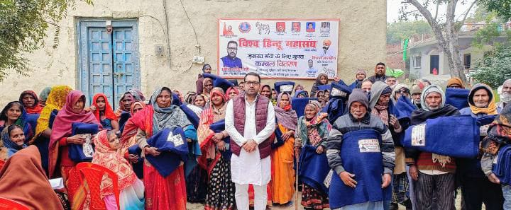 पिंडरा (वाराणसी)। भीषण ठंड को देखते हुए चिलबिला गांव स्थित शंकर भगवान मंदिर पर सोमवार को 200 जरूरतमंद लोगों को कंबल वितरित किए गए। यह कार्यक्रम विश्व हिंदू महासंघ गौरक्षा प्रकोष्ठ के प्रदेश मंत्री अमित गिरी के नेतृत्व में आयोजित किया गया।