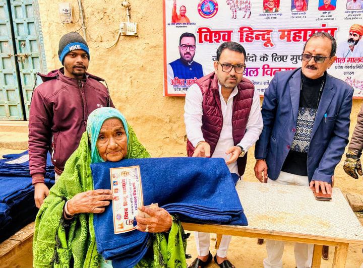 पिंडरा (वाराणसी)। भीषण ठंड को देखते हुए चिलबिला गांव स्थित शंकर भगवान मंदिर पर सोमवार को 200 जरूरतमंद लोगों को कंबल वितरित किए गए। यह कार्यक्रम विश्व हिंदू महासंघ गौरक्षा प्रकोष्ठ के प्रदेश मंत्री अमित गिरी के नेतृत्व में आयोजित किया गया।