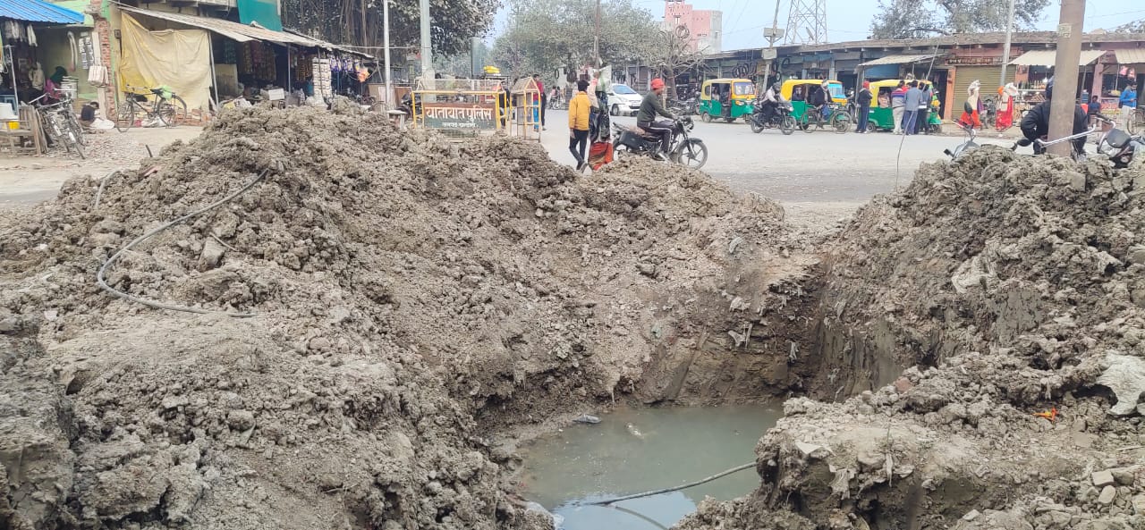 जल सप्लाई बाधित, सड़क पर खुदाई बनी लोगों की परेशानी