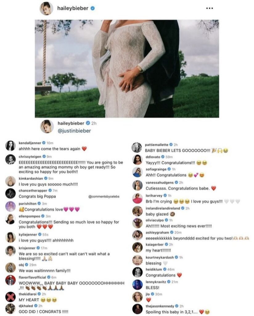 जैसे ही जस्टिन की यह तस्वीर सोशल मीडिया पर वायरल हुई, उन्हें बधाई देने वालों का तांता लग गया। किम कार्दशियन, केंडल जेनर, गिगी हदीद और कई अन्य सेलिब्रिटीज ने कपल को ढेर सारी बधाई दी है। वहीं, फैंस ने भी जस्टिन और हैली को माता-पिता बनने के लिए सिंगर के कमेंट सेक्शन में उन्हें ढेर सारी शुभकामनाएं भी दी हैं। जस्टिन बीबर और हैली के इन तस्वीरों को इंस्टाग्राम पर एक करोड़ से ज्यादा लाइक्स और लाखों कमेन्टस के जरिए दुनिया भर के फैंस अपना प्यार बरसा रहे हैं।