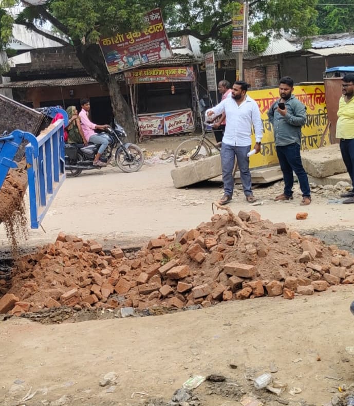 जानलेवा गड्ढों से मिली राहत, समाजसेवी अंजनी ने कराया समतलीकरण