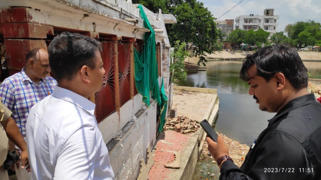 धर्मशाला में नल का पानी बेतरतीब तरीके से बिखरने पर नाराजगी जताते हुए मौके पर ड्रम व मँगा रखने हेतु निर्देशित किया