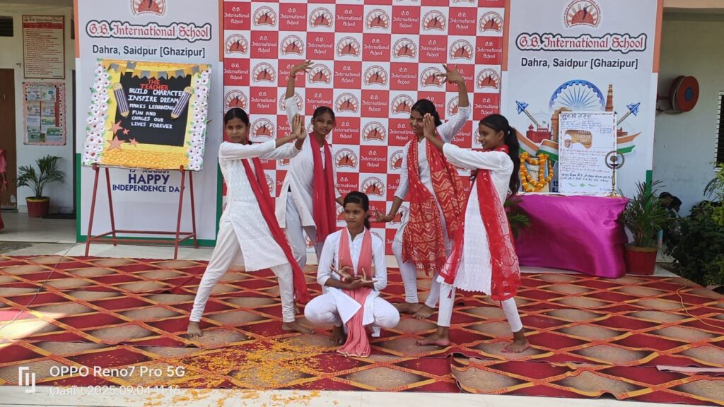 सैदपुर (गाजीपुर)। “शिक्षक हमारे राष्ट्र निर्माण की नींव हैं।” इस भाव के साथ जी.बी. इंटरनेशनल स्कूल में आयोजित भव्य शिक्षक दिवस समारोह में विद्यार्थियों ने अपने अध्यापकों के लिए रंगारंग प्रस्तुतियों और कार्यक्रमों का आयोजन किया। विद्यार्थी अपने आदर्श शिक्षक की वेश-भूषा में सजकर भाव-भंगिमाओं की नकल करते हुए शिक्षक की भूमिका को प्रभावी ढंग से निभाते दिखाई दिए।