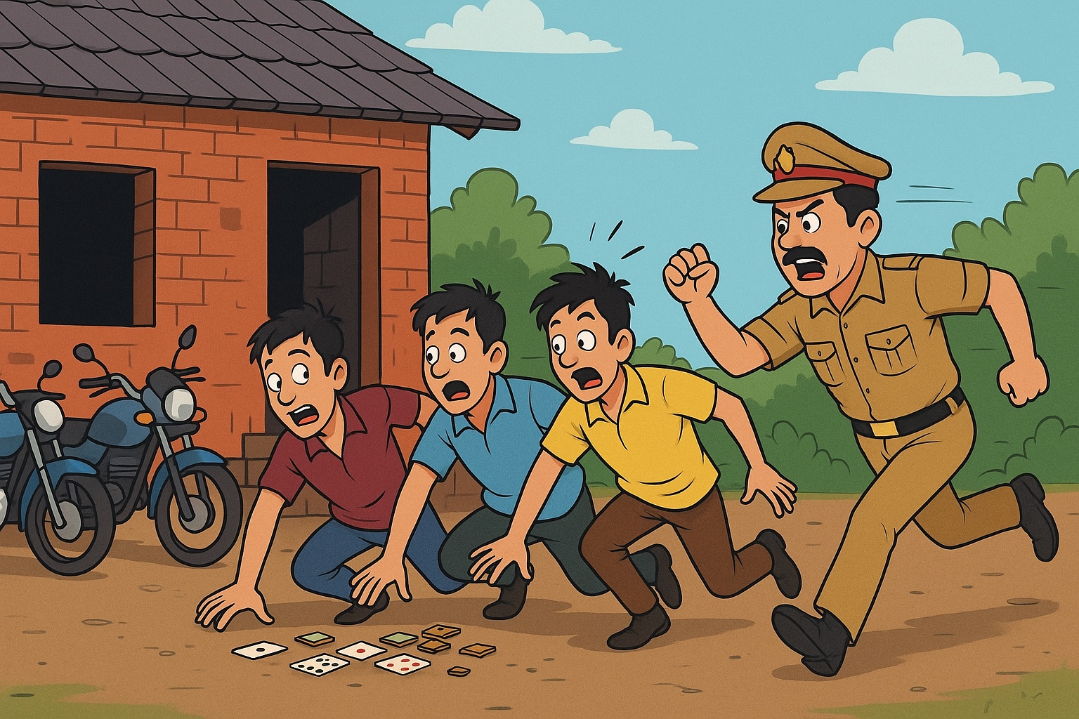 जुए के अड्डे पर पुलिस ने मारा छापा, एक जुआरी गिरफ्तार, तीन बाइक्स जब्त
