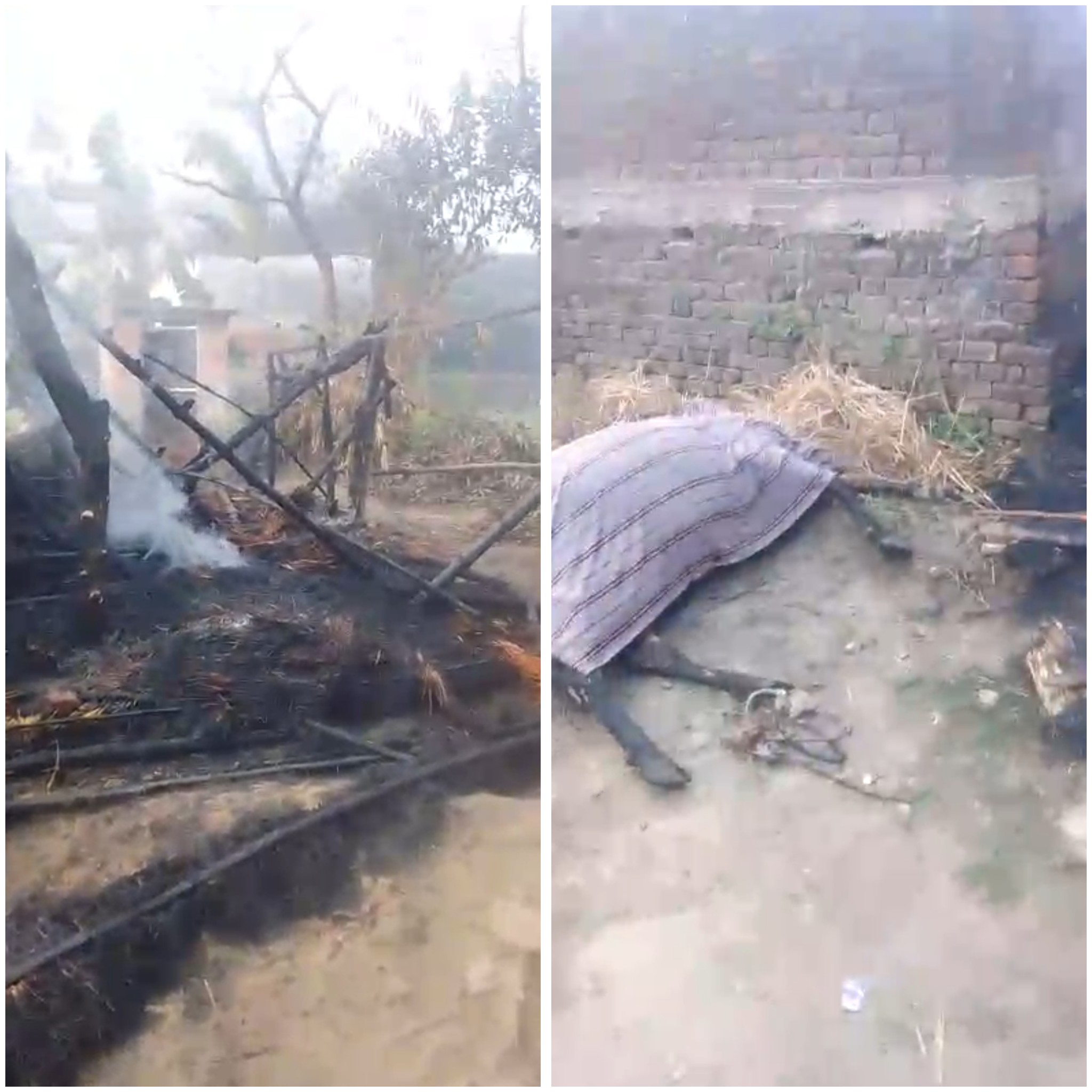 झोपड़ी में लगी आग, गाय की झुलसकर मौत, भारी नुकसान