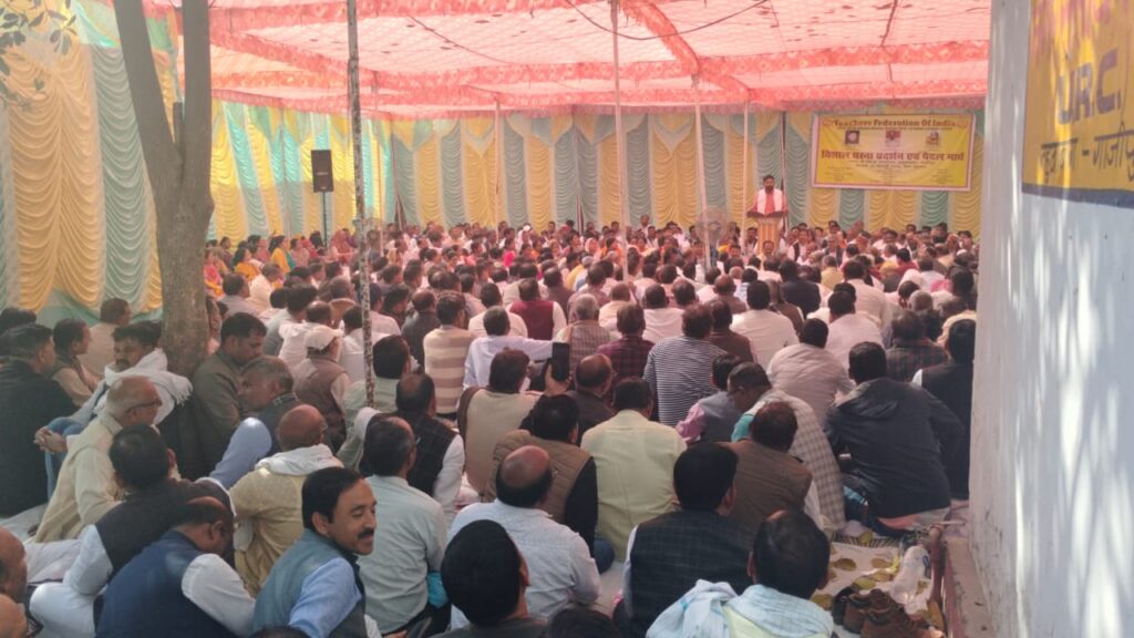 गाजीपुर (जयदेश)। टीचर फेडरेशन ऑफ इंडिया के आह्वान पर बेसिक शिक्षा परिषद के अध्यापकों ने बृहस्पतिवार को अपनी मांगों को लेकर जोरदार धरना-प्रदर्शन और पैदल मार्च किया। शिक्षकों ने आर.टी.ई. एक्ट लागू होने से पूर्व नियुक्त शिक्षकों पर जबरन शिक्षक पात्रता परीक्षा (टीईटी) थोपे जाने का विरोध करते हुए इसे “काला कानून” करार दिया।