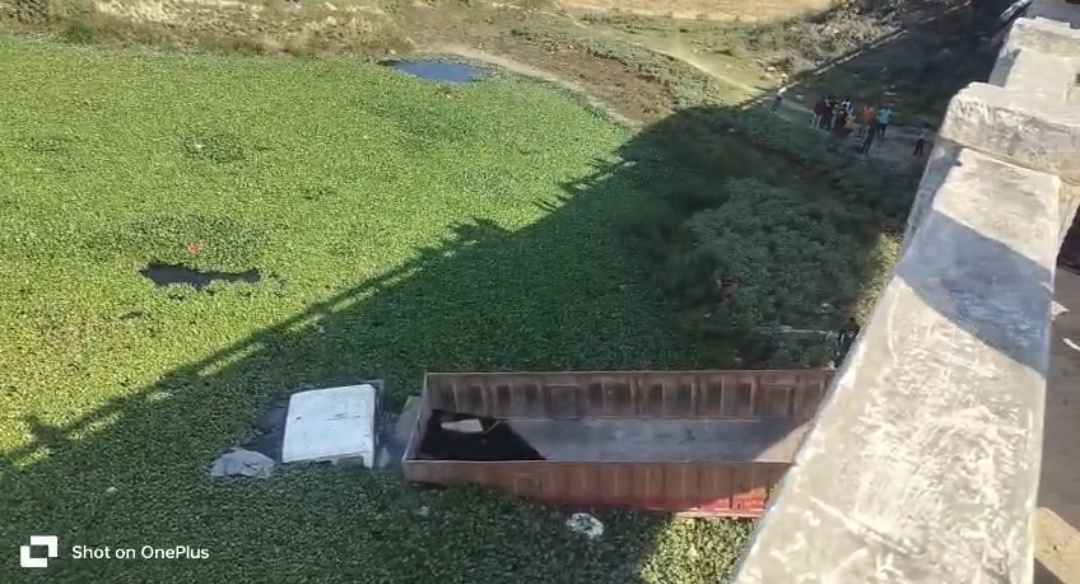 टोल बचाने की होड़ बनी जानलेवा, अनियंत्रित ट्रेलर आमी नदी में गिरा