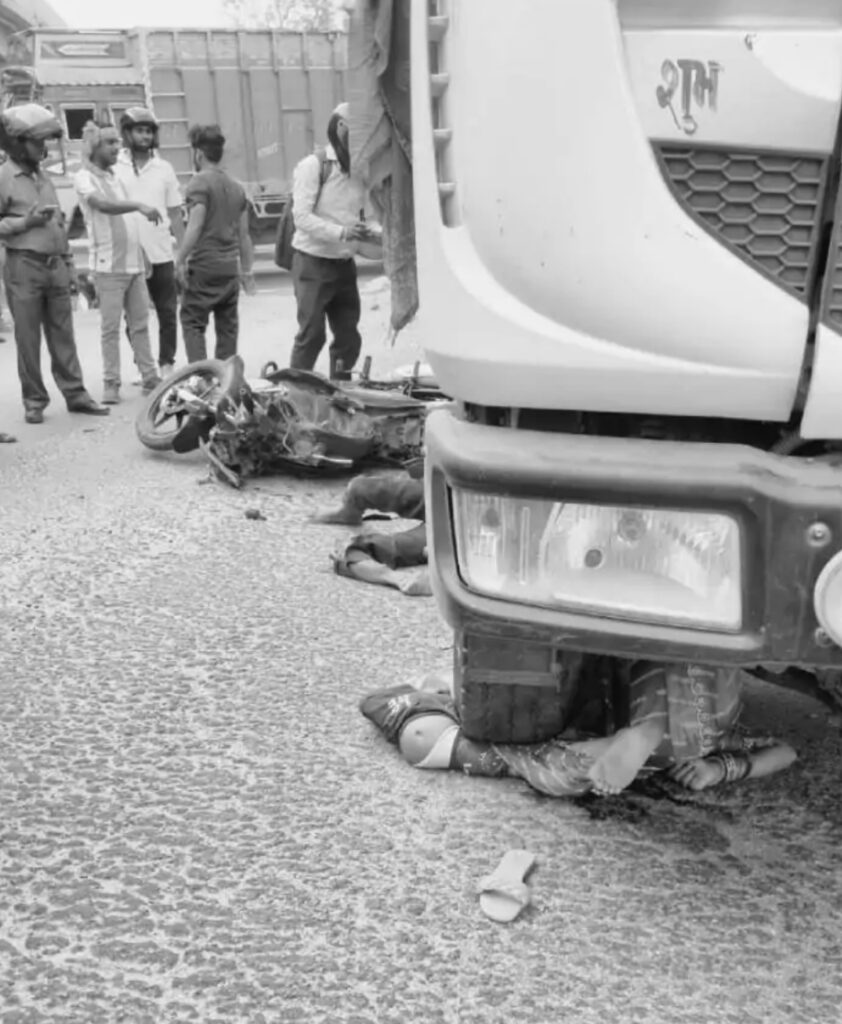 ट्रक की चपेट में आकर माता-पिता सहित मासूम की मौत
