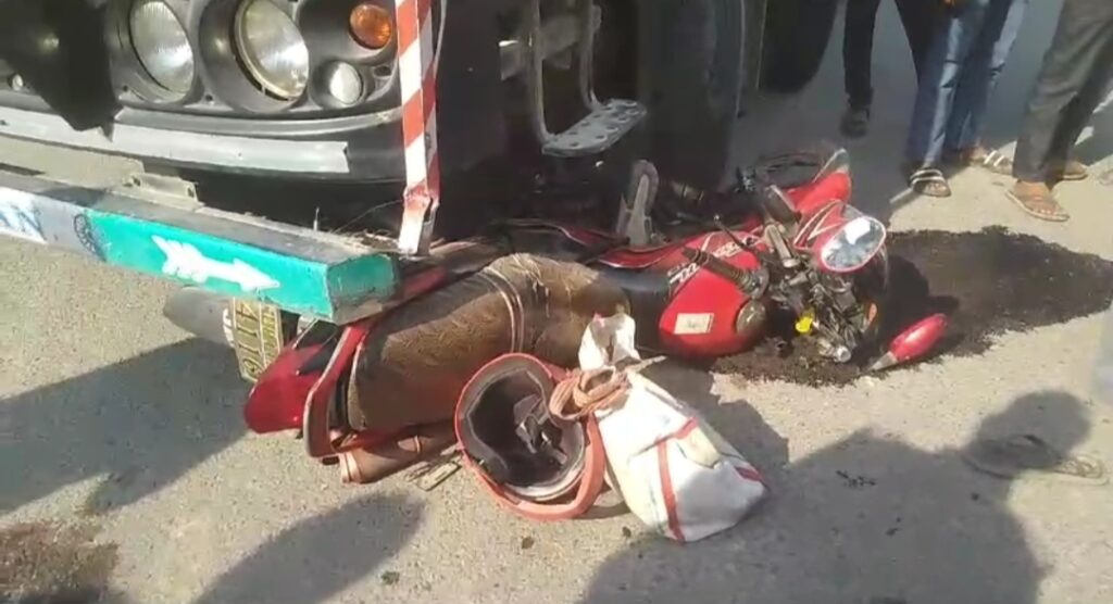 सुल्तानपुर। दोस्तपुर थानाक्षेत्र में सोमवार को भीषण सड़क दुर्घटना हुई। यहां ट्रक और बाइक की आमने-सामने भीषण भिड़ंत हुई। ट्रक के पहिए में फंसकर बाइक काफी दूर तक गई। जिसमें पिता-पुत्र का पैर फ्रैक्चर हो गया है।