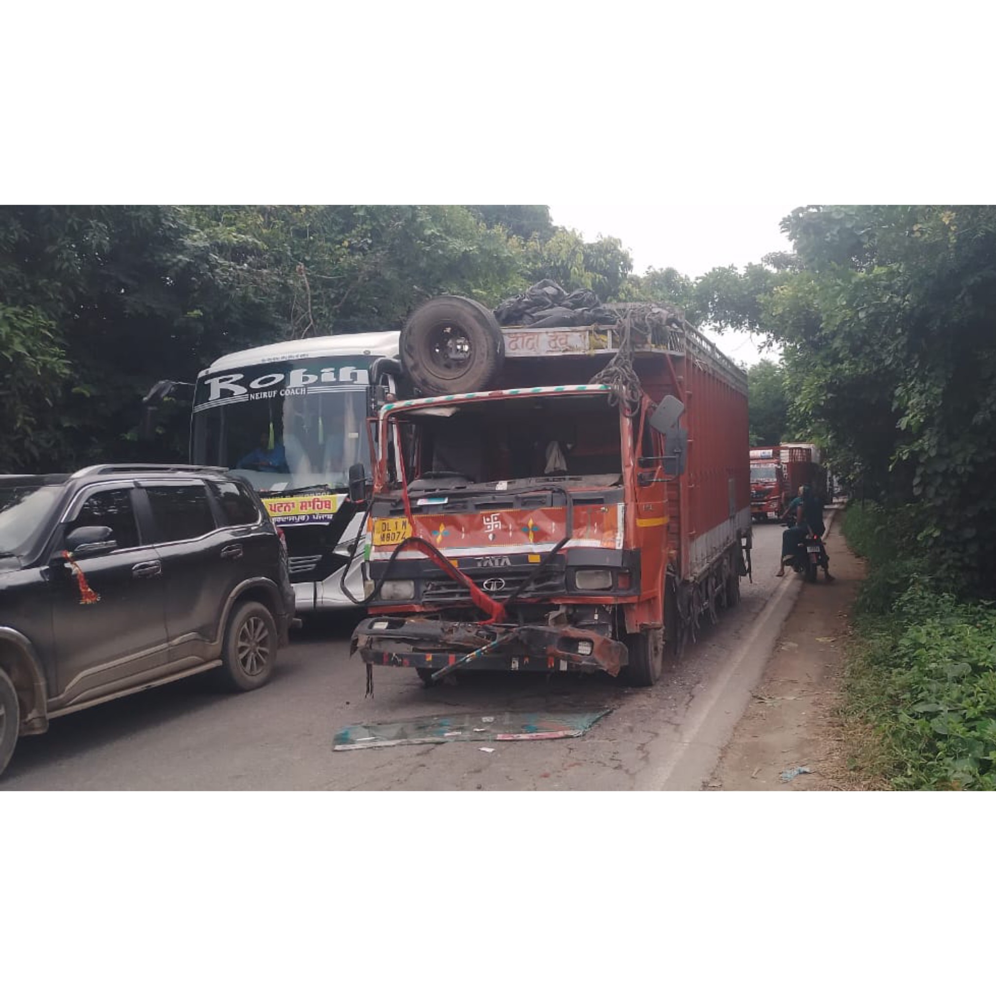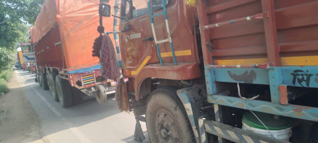 ट्रक भिड़ंत से घंटों थमा यातायात, पुलिस ने संभाली स्थिति