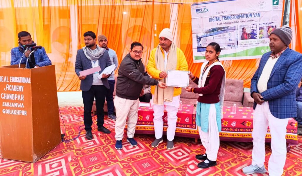 गोरखपुर। चाँदपर स्थित आइडियल स्कूल शाखा में NIIT फाउंडेशन की ओर से संचालित डिजिटल प्रशिक्षण कार्यक्रम के अंतर्गत प्रतिभागियों को प्रमाण-पत्र वितरित किए गए। यह कार्यक्रम ग्रामीण युवाओं और विद्यार्थियों को डिजिटल रूप से सशक्त बनाने की दिशा में एक महत्वपूर्ण कदम साबित हो रहा है।