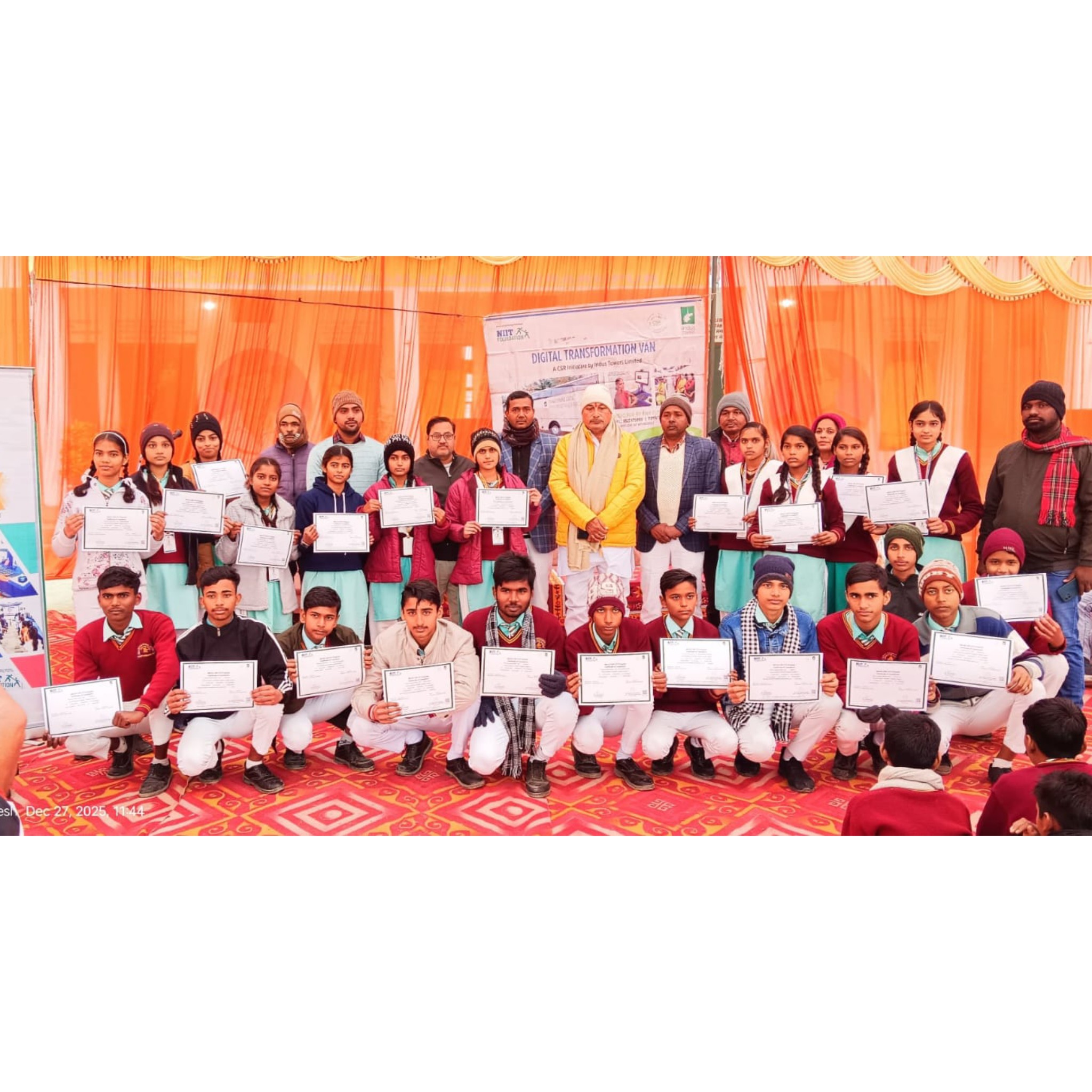 कार्यक्रम के दौरान प्रतिभागियों को प्रमाण-पत्र प्रदान किए गए, जिससे उनमें आत्मविश्वास और आगे बढ़ने की प्रेरणा देखने को मिली। उपस्थित अतिथियों और ग्रामीणों ने NIIT फाउंडेशन तथा इंडस टावर्स डिजिटल बस टीम के प्रयासों की सराहना करते हुए कहा कि ऐसे कार्यक्रम शिक्षा जगत में सकारात्मक बदलाव लाने में सहायक सिद्ध होंगे।