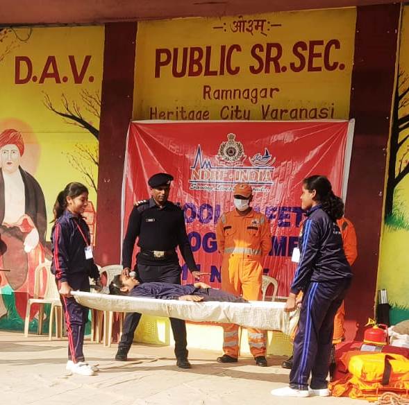 Varanasi: आपदा जोख़िम नियुनिकरण मुहीम के अंतर्गत आपदाओं से बचाव एवं प्रबंधन हेतु विभिन्न संस्थानों और हितधारकों को सशक्त बनाने के लिए एनडीआरएफ की टीमें लगातार प्रशिक्षण प्रदान कर रही है साथ ही शिक्षण संस्थानों में आपदा से बचाव हेतु स्कूल सेफ्टी प्रोग्राम का भी आयोजन कर रही है। उसी कड़ी में आज डी ए वी पब्लिक स्कूल रामनगर में कमान्डेंट मनोज कुमार शर्मा के दिशा-निर्देशन में एनडीआरएफ टीम द्वारा एक दिवसीय प्रशिक्षण कार्यक्रम आयोजित किया गया। जिसमें एनडीआरएफ की प्रशिक्षित एवं अनुभवी टीम द्वारा भूकंप में बचाव के तरीके, सीपीआर, गले में फंसी बाहरी वस्तु के निकालने के तरीके, शारीरिक चोटों का अस्पताल पूर्व उपचार, तात्कालिक स्ट्रेचर बनाना, लिफ्टिंग और मूविंग के तरीके, अग्निशमन और आग से बचाव की तकनीक, रस्सी बचाव तकनीक, अग्निशामक यंत्र का उपयोग, इम्प्रोवाइज्ड फ्लोटिंग डिवाइस (राफ्ट) बनाना, सड़क सुरक्षा आदि विभिन्न विषयों पर प्रशिक्षण प्रदान किया गया। इसके अतिरिक्त कोरोना के नए वेरिएंट से बचने के लिए कोविड प्रोटोकोल का पालन करने सम्बन्धित तरीकों की जानकारी भी दी।