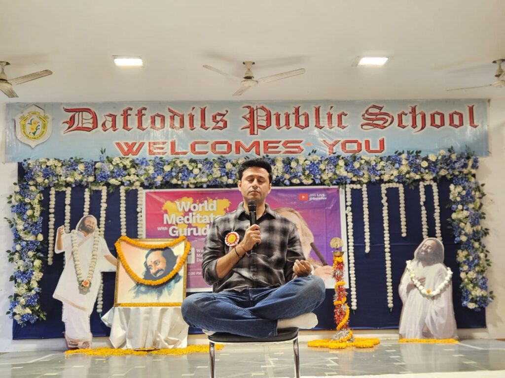 कार्यक्रम को और प्रभावी बनाने के लिए डैफोडिल्स स्कूल के प्रांगण में अभिनेता, सफल उद्यमी और आर्ट ऑफ लिविंग के प्रेरक करण अरोड़ा का आगमन हुआ। उनके मार्गदर्शन में करीब 400 छात्रों ने ध्यान क्रिया के तौर-तरीके सीखे और जीवन को सकारात्मक दिशा में ले जाने के लिए प्रेरित हुए।