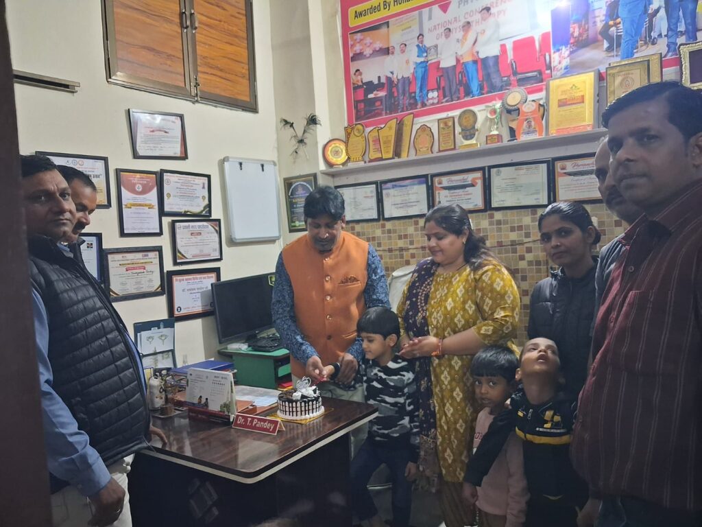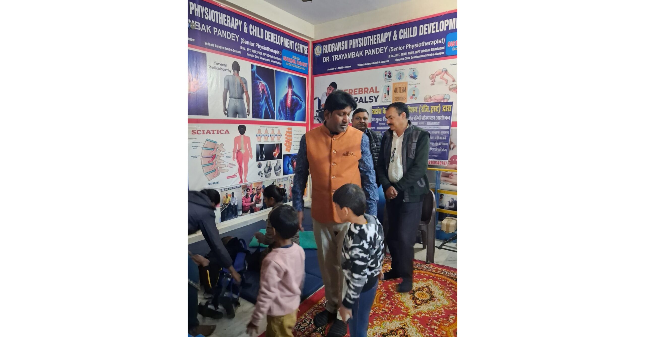 गोरखपुर। राष्ट्रीय पत्रकार सुरक्षा परिषद के चिकित्सा प्रकोष्ठ प्रभारी डॉ. त्र्यंबक पांडे का जन्मदिन आज रुद्रांश फिजियोथैरेपी एंड चाइल्ड डेवलपमेंट सेंटर पर सेरेब्रल पॉलसी से पीड़ित बच्चों के साथ हर्षोल्लास से मनाया गया। केक काटकर बच्चों के बीच खुशियाँ बाँटने का यह अनोखा आयोजन सभी को भावुक कर गया। कार्यक्रम में परिषद के जिला प्रभारी दुर्गेश मिश्र एवं जिलाध्यक्ष राकेश तिवारी ने डॉ. त्र्यंबक पांडे को शॉल पहनाकर सम्मानित किया।