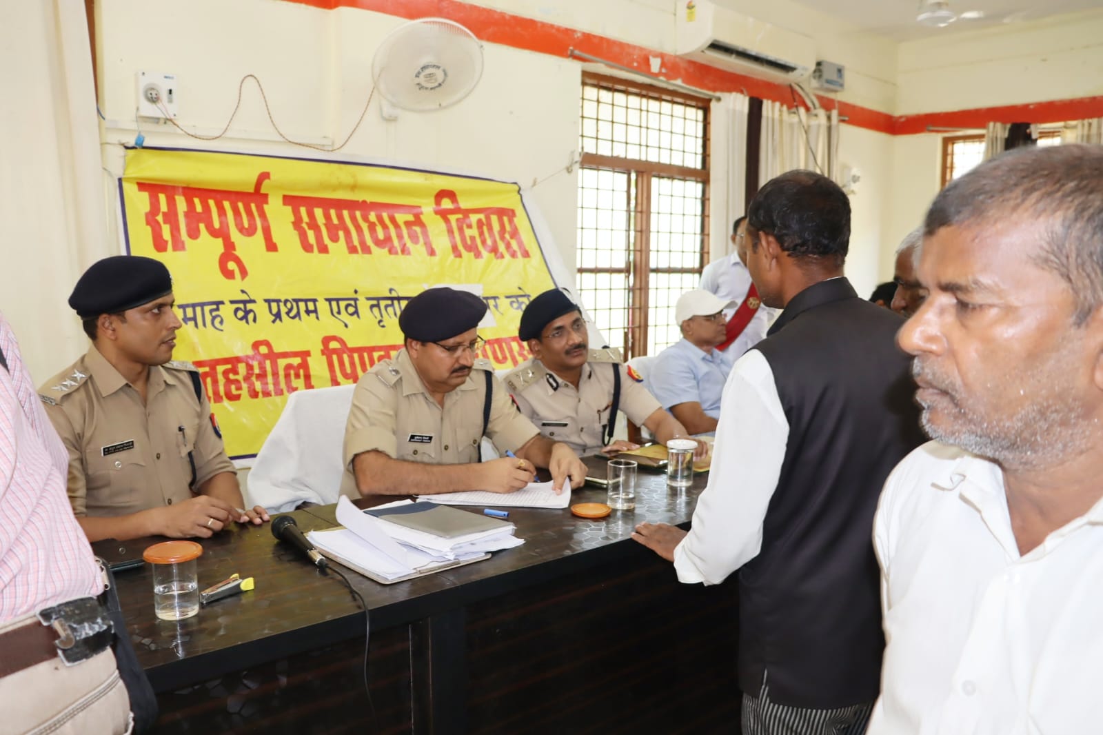 वाराणसी। शासन की मंशा के अनुरुप जनसमस्याओं की सुनवाई तथा त्वरित निस्तारण हेतु आज तहसील दिवस के अवसर पर पुलिस महानिरीक्षक वाराणसी परिक्षेत्र वाराणसी के0 सत्यनारायणा व पुलिस अधीक्षक वाराणसी ग्रामीण श्री सूर्यकान्त त्रिपाठी द्वारा तहसील पिण्डरा में जन समस्याओं की सुनवाई की गई एवं उनके त्वरित निस्तारण हेतु संबंधित को तत्काल मौके पर जाकर शिकायतों की निष्पक्षता से जाँच करके शत प्रतिशत निस्तारण करने हेतु निर्देशित किया गया ।