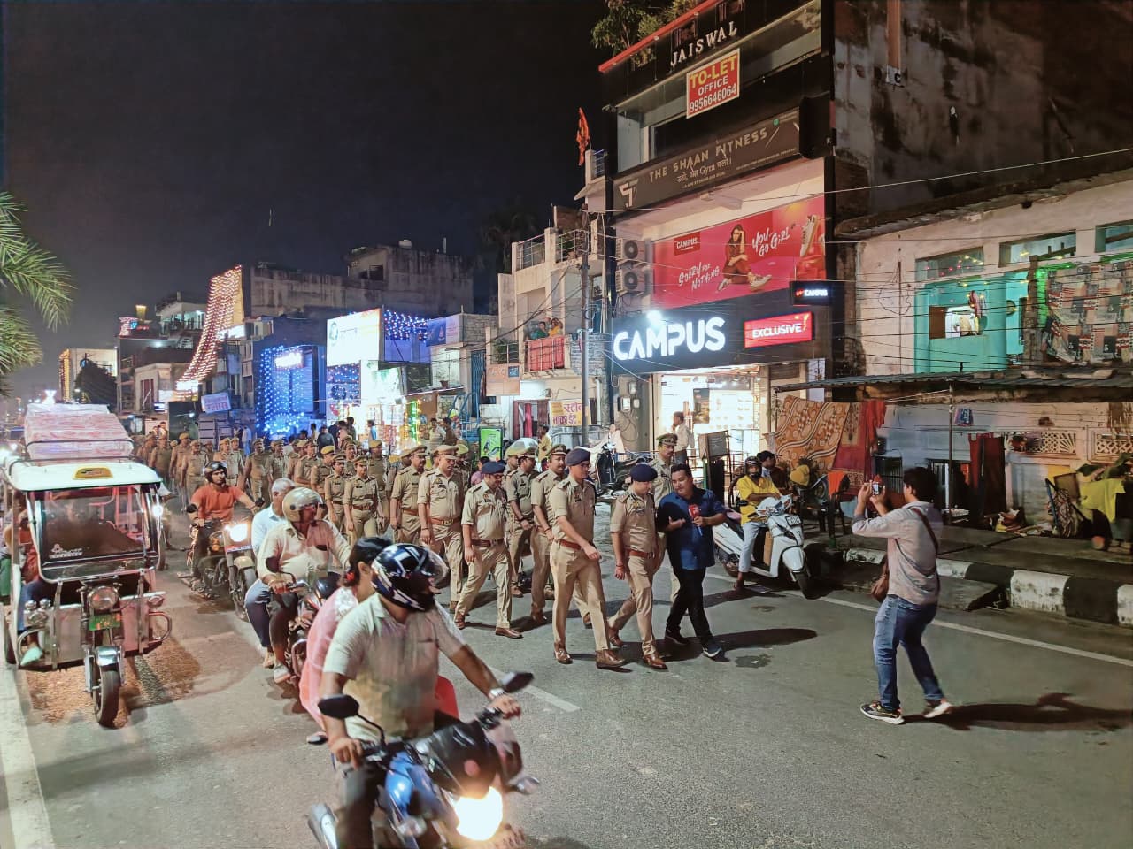 पुलिस अधिकारियों ने रेती रोड, अलीनगर, बख्शीपुर, गोलघर समेत कई भीड़भाड़ वाले इलाकों का निरीक्षण किया। इस दौरान उन्होंने दुकानदारों, व्यापार मंडल के प्रतिनिधियों और आम नागरिकों से संवाद स्थापित कर उनकी सुरक्षा संबंधी सुझाव भी सुने।