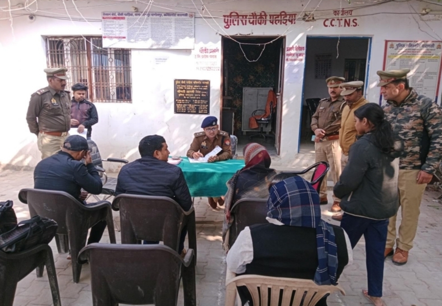 वाराणसी। माह के चतुर्थ शनिवार को वरुणा जोन के सभी थानों पर “थाना समाधान दिवस” का आयोजन हुआ। पुलिस उपायुक्त वरुणा जोन अमित कुमार ने थाना लालपुर पाण्डेयपुर पहुंचकर फरियादियों की शिकायतें सुनीं।पुलिस उपायुक्त वरुणा ज़ोन द्वारा राजस्व – पुलिस से सम्बन्धित शिकायतों का निस्तारण आपसी सामंजस्य से हल करने के लिए सुझाव दिया। पुलिस फोर्स के साथ राजस्वकर्मी मौके पर जाकर विवादित मामलों का निस्तारण करें।