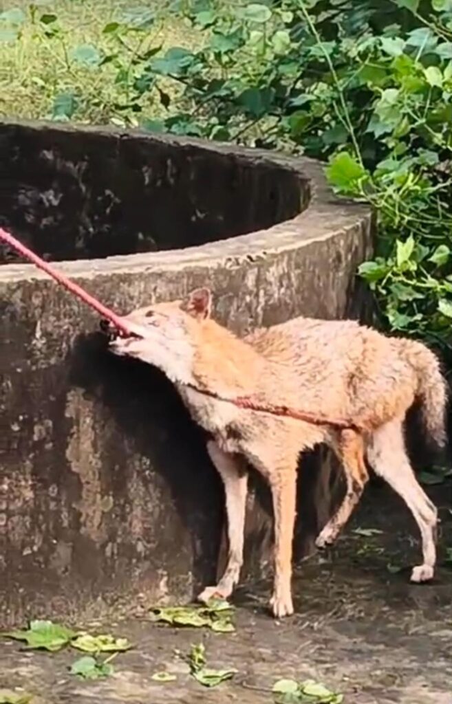 दस दिन से कुएं में फंसे सियार को सर्पमित्र रतन ने बचाया