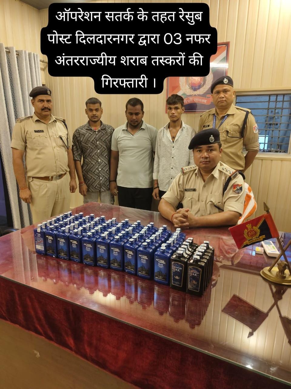 दिलदारनगर रेलवे सुरक्षा बल के हत्थे चढ़े तीन शराब तस्कर