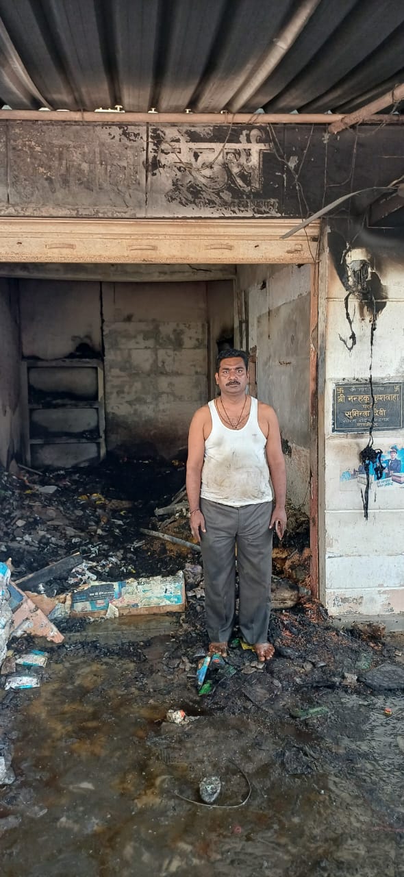 शॉर्ट सर्किट से किराना दुकान में लगी आग, लाखों का माल जलकर राख