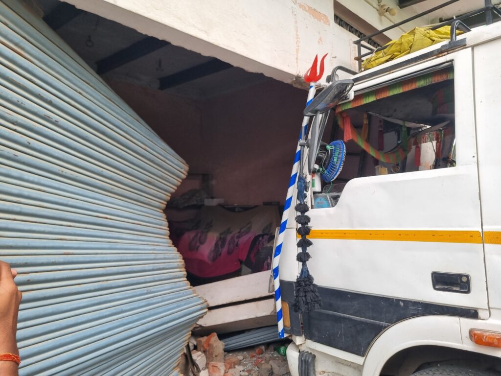 दुकान में घुसा ट्रक, लाखों का नुकसान