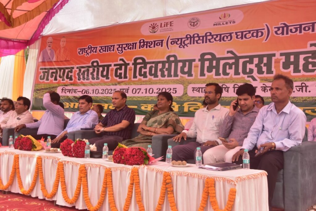 गाजीपुर। कृषि विभाग द्वारा जिले में किसानों को मोटे अनाज के महत्व के प्रति जागरूक करने के उद्देश्य से आयोजित दो दिवसीय “मिलेट्स महोत्सव एवं मेला” का भव्य उद्घाटन कृषि विज्ञान केन्द्र, पी.जी. कॉलेज, गाजीपुर में संपन्न हुआ। कार्यक्रम का शुभारंभ नगर पालिका अध्यक्ष सरिता अग्रवाल एवं अपर जिलाधिकारी वि0/रा0 दिनेश कुमार द्वारा दीप प्रज्ज्वलन कर किया गया।