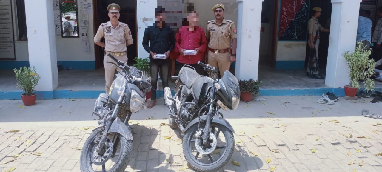 वाराणसी: चोरी/लूट की घटनाओं के अनावरण हेतु चलाये जा रहे अभियान के क्रम में पुलिस उपायुक्त वरुणा जोन के निर्देशन में अपर पुलिस उपायुक्त वरुणा जोन के पर्यवेक्षण में सहायक पुलिस आयुक्त सारनाथ के नेतृत्व में थाना चोलापुर पुलिस टीम मुखबिर की सूचना पर मु0अ0सं0 131/2023 धारा 417,406, 420 भा0द0वि0 थाना चोलापुर कमिश्नरेट वाराणसी व मु0अ0सं0 132/2023 धारा 417,406, 420 भा0द0वि0 थाना चोलापुर कमिश्नरेट वाराणसी से सम्बन्धित वांछित अभियुक्तगण केशव प्रसाद सिंह पुत्र राम पलट सिंह निवासी खुशहाल नगर सेक्टर-A बड़ालालपुर थाना शिवपुर वाराणसी, अभिषेत कुमार पुत्र महेन्द्र प्रसाद निवासी ग्राम लेदुपुर थाना सारनाथ जनपद वाराणसी को कटहलगंज के पास से गिरफ्तार किया गया। अभियुक्तगण के कब्जे से 02 चोरी की मोटरसाइकिल व धोखाधड़ी में प्रयुक्त 03 मोबाइल फोन व 04 आधार कार्ड, 01 ड्राइविंग लाइसेंस, 01 पैन कार्ड व जामा तलाशी से 1230 रूपये नगद बरामद हुआ अभियुक्तगण की गिरफ्तारी व चोरी की मोटरसाइकिलों की बरादमगी के सम्बन्ध में थाना चोलापुर में मु0अ0सं0 133/2023 धारा 41/411/414 भा0द0वि0 पंजीकृत कर आवश्यक विधिक कार्यवाही की जा रही है।