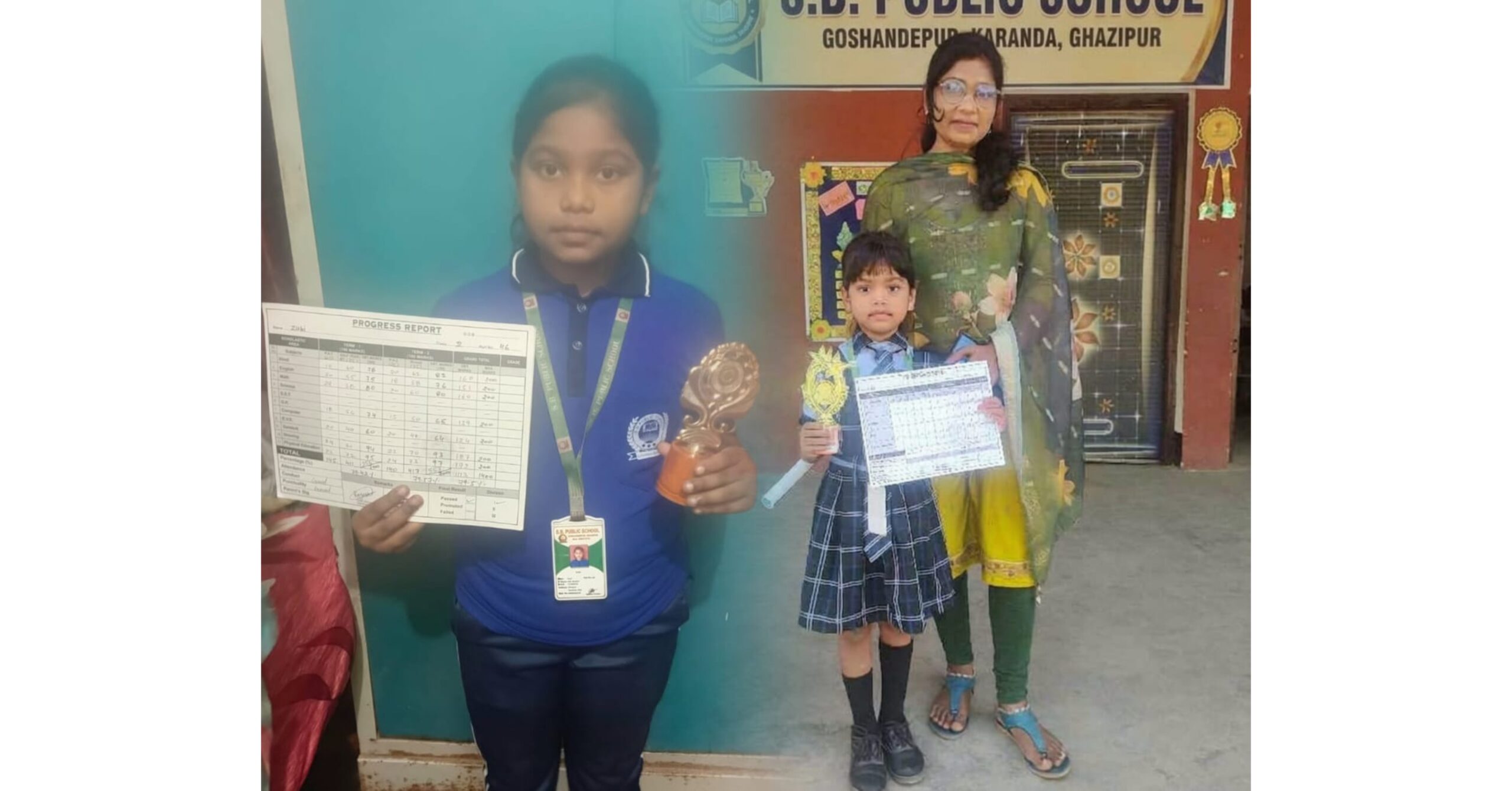 नंदगंज (गाजीपुर) जयदेश। करण्डा क्षेत्र के एस.बी. पब्लिक स्कूल, गोसन्देपुर का वार्षिक परीक्षाफल घोषित होते ही छात्राओं में खुशी का माहौल छा गया। जिसमें कक्षा एलकेजी की छात्रा अदा और कक्षा दो की छात्रा जुबी ने अपनी-अपनी कक्षाओं में सर्वोच्च स्थान प्राप्त कर परिवार का नाम रोशन किया है।