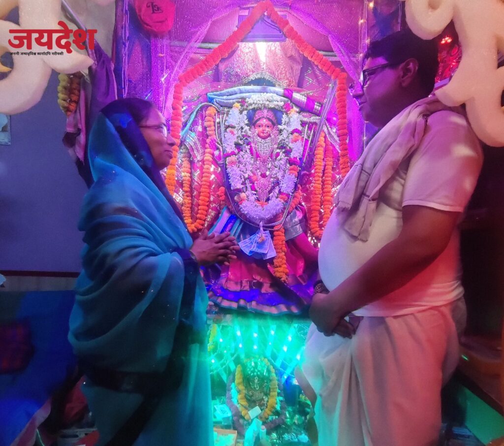 वाराणसी। धार्मिक एवं सांस्कृतिक नगरी काशी में लल्लापुरा क्षेत्र में स्थित पंडित नीरज गुरु के आवास पर माता रानी के मंदिर पर चैत्र नवरात्रि के उपलक्ष्य में भजन-कीर्तन और जगराता का आयोजन हो रहा है। जिसमें बड़ी संख्या में महिलाएं, बच्चे और स्थानीय लोग शामिल हो रहे हैं। धार्मिक उत्सव के आयोजन से माहौल भक्तिमय हो गया है।