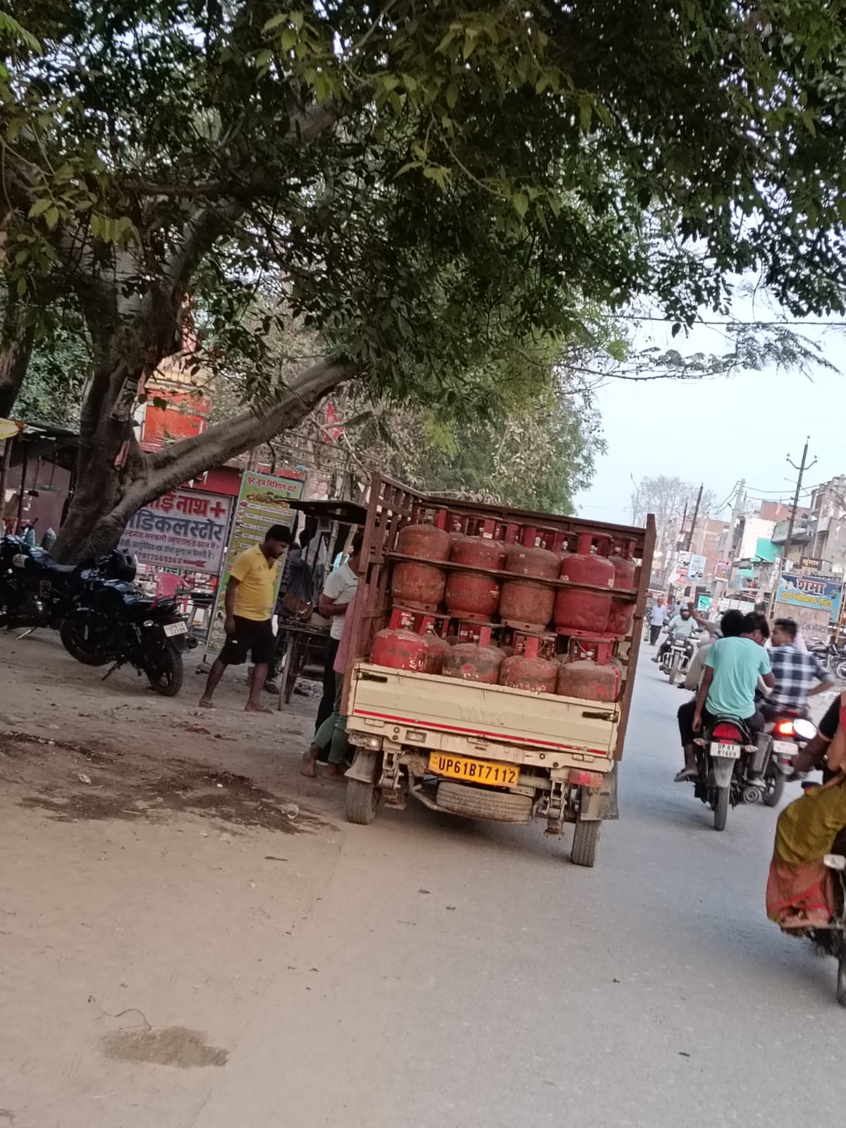 नंदगंज में गैस सिलेंडर की होम डिलीवरी शुरू, लोगों ने ली राहत की सांस